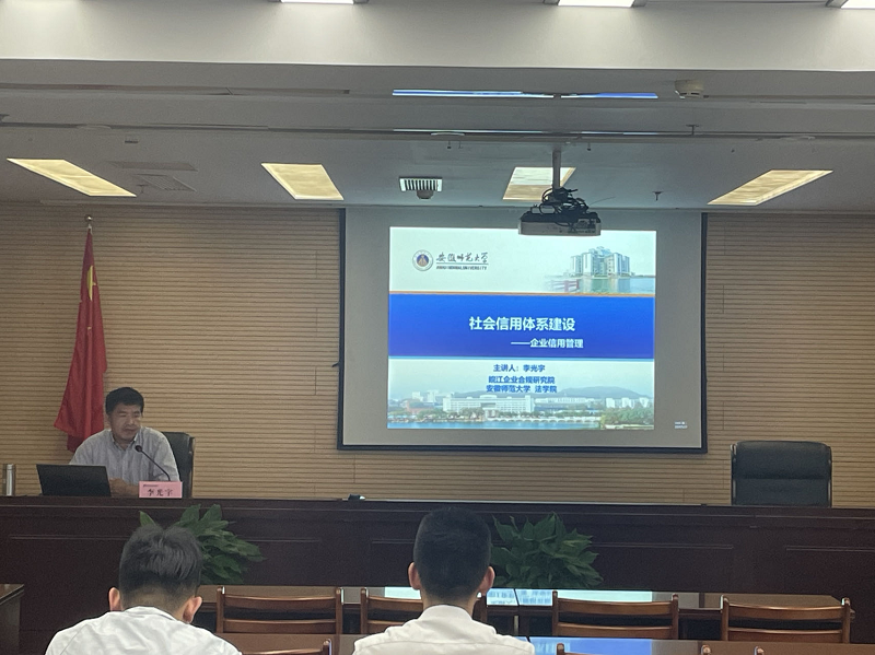 為積極配合市委、市政府全面推進(jìn)蕪湖市社會(huì )信用體系建設,提高政務(wù)誠信建設水平,不斷優(yōu)化營(yíng)商環(huán)境,提升人民群眾和經(jīng)營(yíng)主體對信用的獲得感,并進(jìn)一步提高公司全體成員守信用信意識,我公司于5月21日下午舉辦“社會(huì )信用體系建設-企業(yè)信用管理”專(zhuān)題活動(dòng)。活動(dòng)特邀安徽師范大學(xué)法學(xué)院副院長(cháng)李光宇教授為大家做信用體系建設專(zhuān)題講座。