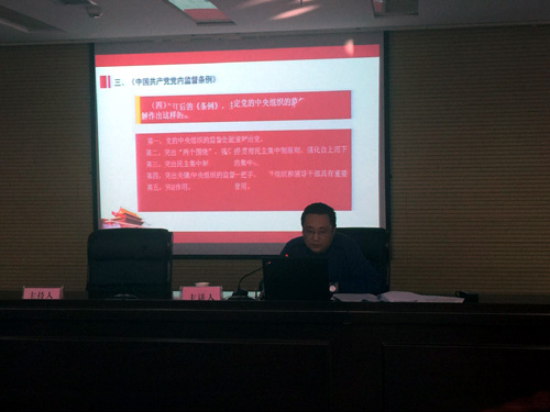 講座的內容立足全面從嚴治黨,堅持將紀律挺在前面的要求,圍繞黨的紀律特別是政治紀律,對《中國共產(chǎn)黨廉潔自律準則》、《中國共產(chǎn)黨紀律處分條例》以及《中國共產(chǎn)黨黨內監督條例》進(jìn)行了解讀和分析,內容充實(shí)、條理清晰、重點(diǎn)突出。講座圍繞黨員、干部在工作生活中容易觸碰的“雷區”,還列舉了“禮尚往來(lái)不能這樣來(lái)”,“6類(lèi)飯局不能去”、 “如何操辦紅白喜事””等具體問(wèn)題的表現形態(tài),結合市紀委近年來(lái)查處的一些黨員違法違規的案件,提醒廣大干部員工要防微杜漸,時(shí)刻保持清醒的頭腦,不能觸碰紀律紅線(xiàn)。