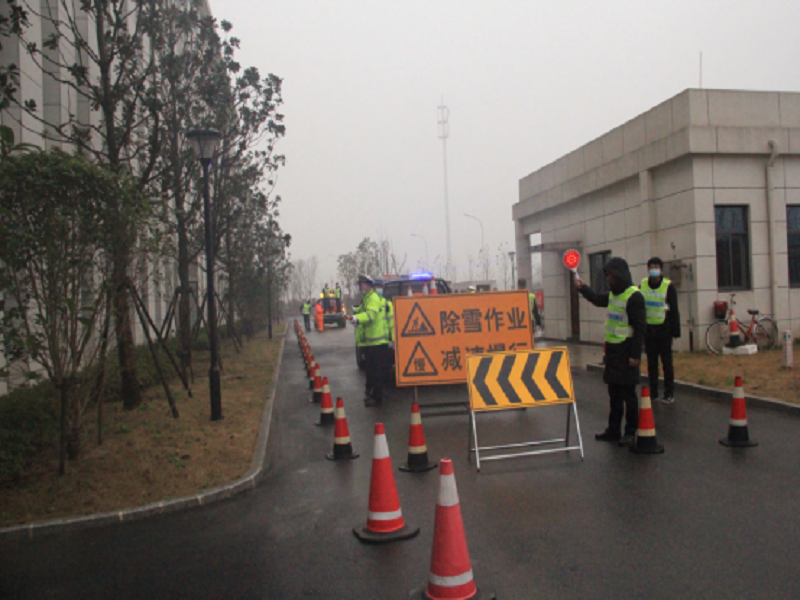 本次演練以接交警指令,銀湖路匝道積雪,需臨時(shí)封道清除積雪為背景,采取桌面推演與實(shí)戰演練相結合。共分為三個(gè)環(huán)節,先是通過(guò)電子屏幕作銀湖路臨時(shí)封道作業(yè)桌面推演,全面展示交通應急力量應對多樣災種綜合應急處置能力。再到情報板信息發(fā)布模擬演練,針對路面積雪情況變化及時(shí)同步更新情報板提示信息,配合啟用高音喇叭提醒過(guò)往車(chē)輛。最后進(jìn)行道路除雪實(shí)操演練,指令下達后,應急人員、機械車(chē)輛迅速趕到園區北側輔路集結完畢,在交管車(chē)輛的指引下,向模擬積雪路段行進(jìn),開(kāi)始投入緊張的除雪鏟冰作業(yè)當中。