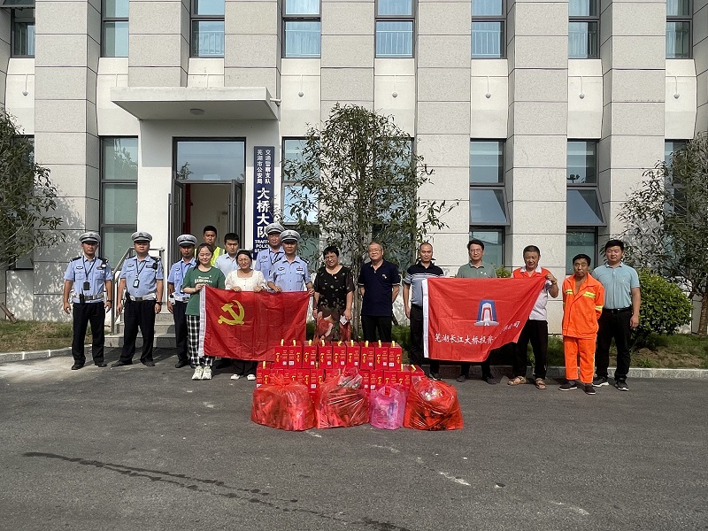 為表達對辛苦執勤的一線(xiàn)交警及道路管養人員的敬意和慰問(wèn),7月18日下午,蕪湖長(cháng)江大橋投資建設有限公司開(kāi)展了共建慰問(wèn)送清涼活動(dòng),公司為一線(xiàn)交警及城建集團道路管養人員送上了清涼的飲用水、防曬用品等物資。