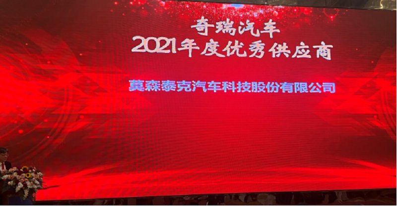 2021年度,是蕪湖莫森泰克汽車(chē)科技股份有限公司取得豐碩成果的一年,在公司領(lǐng)導高瞻遠矚的正確引領(lǐng)下,通過(guò)全員上下的共同努力和拼搏,各項指標都圓滿(mǎn)完成,也因此榮登奇瑞汽車(chē)“2021年度優(yōu)秀供應商”光榮榜。
