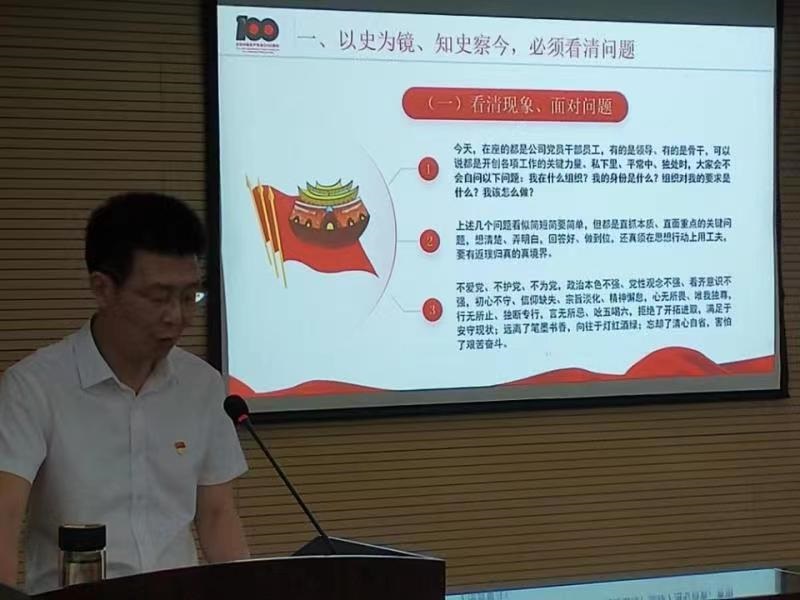 夏峰董事長(cháng)以“以百年黨史砥礪初心使命在新征程上行大道擔大任成大器”為題講授專(zhuān)題黨課。報告從看清問(wèn)題、守道明理、堅定理想、明德修身、擔當作為五個(gè)方面勉勵公司全體干部員工作為新時(shí)代的建設者,要從百年黨史中汲取奮進(jìn)力量,從過(guò)往的足跡中獲得啟示,初心不改、信仰不墜、使命不忘,共同以臨淵履冰的敬畏之心扛起新時(shí)代高質(zhì)量發(fā)展的重任。