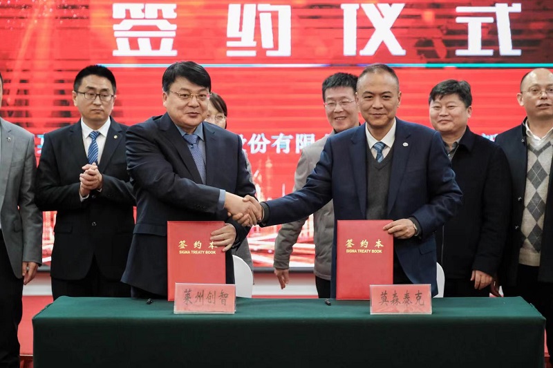 3月1日,蕪湖莫森泰克汽車(chē)科技股份有限公司與萊州創(chuàng )智新材料科技有限公司的投資簽約儀式在煙臺萊州市隆重舉行。市國資委主任夏峰、公司董事長(cháng)王津華、副總經(jīng)理伍運飛等共同出席了本次簽約儀式并致辭。